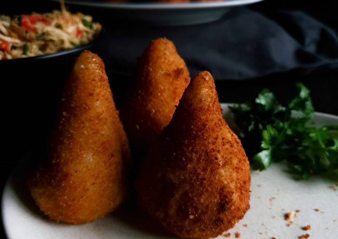 An den Fleischkroketten namens Coxinha führt in Brasilien kein Weg vorbei. Im REWE Rezept zeigen wir, wie du die knusprige Leckerei aus Hähnchen zubereitest. Coxinha (Portuguese: [koˈʃĩjɐ], little [chicken] thigh) is a popular food in Brazil consisting of chopped or shredded chicken meat, covered in dough, molded into a shape resembling a teardrop, battered and fried. Hallo. Coxinha – Hähnchenkroketten kann von Anfängern zubereitet werden. Keine Angst vor Schwierigkeiten, denn ein gesundes Menü zuzubereiten dauert nicht lange. Das Rezept ist einfach und die benötigten Zutaten sind leicht zu finden. Du kannst kochen Coxinha – Hähnchenkroketten using 17 zutaten und 9 zubereitung. So kochst du das.